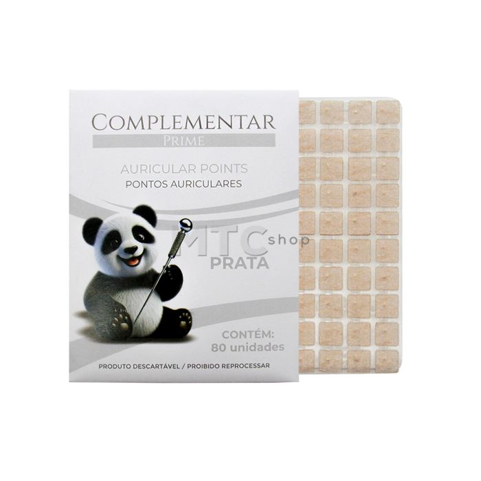 O ponto de prata é utilizado nas aplicações de auriculoterapia. A técnica de auriculoterapia, consiste na aplicação do material esférico, presos a pele com pequenos pedaços de fita microporosa ou esparadrapo, usualmente os adesivos possuem formatos quadrado. Após a aplicação dos pontos auriculares, a estimulação mecânica dos pontos diminui as dores, problemas físicos e psíquicos. A placa ponto prata complementar, possui 80 pontos auriculares adesivos em fita microporosa, são adesivos de ótima qualidade que aderem muito bem a todos os tipos de pele. Os pontos auriculares prata complementar tem cerca de 1,5 a 1,8mm. Os pontos de auriculoterapia estão dispostos em uma cartela plástica com fino acabamento antiaderente, com cavidades que facilitam a retirada dos pontos auriculares. Características: