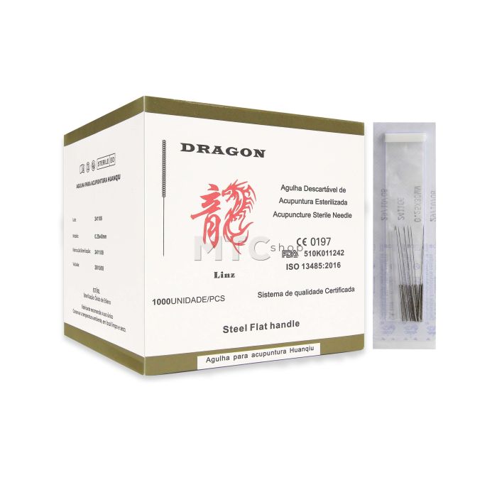 As agulhas sistêmicas Dragon Linz, são utilizadas na acupuntura em geral e também são utilizadas nas técnicas de Dry Needling - agulhamento a seco e eletrolipólise. As agulhas sistêmicas Dragon Linz, foram desenvolvidas em fio de aço inoxidável, e recebem um banho de óxido etileno para esterilização. Estas agulhas estão dispostas em caixas de papelão contendo 1000 unidades de agulhas, separadas em blister contendo 10 unidades de agulhas e bastão plástico mandril, para auxiliar na aplicação. As agulhas sistêmicas Dragon Linz, cumprem todas as solicitações da Anvisa por isso se torna um produto extremamente confiável. Características da agulha sistêmica: