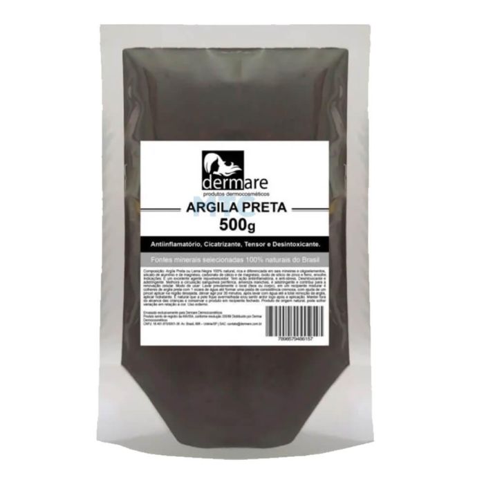 A argila preta da marca Dermare, tem alto poder purificante e atua diretamente nos poros. Tem ação iluminadora, detox e purificante. Atua na retirada de poluentes absorvidos pela pele, regenera as células, minimiza as marcas de expressão e estrias por conter em sua composição ação rejuvenescedor. Características: