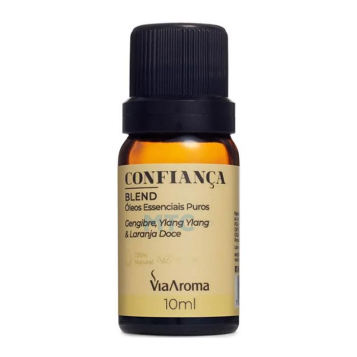 O Blend de óleos essenciais confiança é produzido pela empresa Via Aroma, e está disposto em embalagem de vidro contendo 10ml. Possui essência de Ylang-Ylang, Patchoulli, Cravo e Sândalo. Sua fragrância tem notas Floral e Frutal, são notas marcantes e intensas. Características: