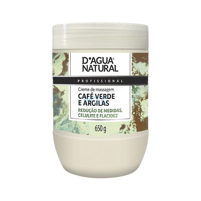 O creme de massagem com café verde e argilas foi desenvolvido pela empresa DAgua natural e está disposto em embalagem plástica com 650g. Indicado para redução de medidas e celulites, em sua composição combina o extrato de café verde, argila verde, rosa e branca. Essa combinação promove um efeito desintoxicante, tonificante e adstringente. Características: