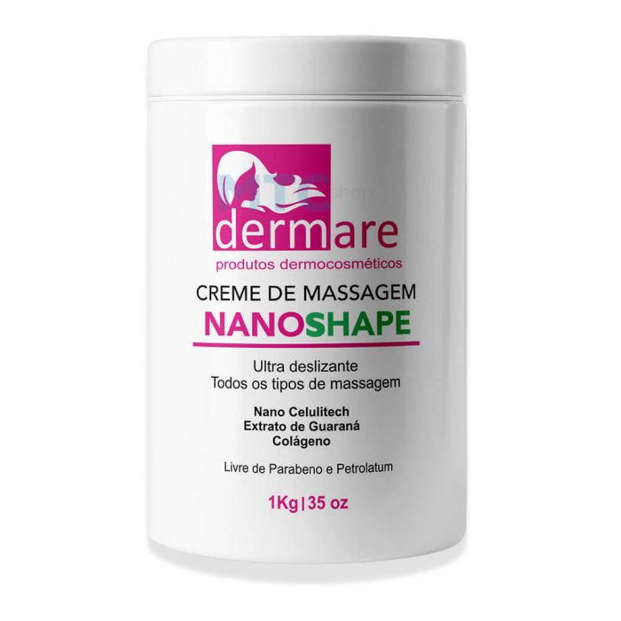 O creme nanoshape foi desenvolvido pela empresa Dermare e está disposto em uma embalagem plástica com 1kg. Responsável por estimular o fluxo sanguíneo é utilizado em massagem modeladora, rico em propriedades antilipêmica, lipolítica e vasoterapeuta. O creme nanoshape é ultra deslizante e possibilita ao profissional excelente performance nos procedimentos.