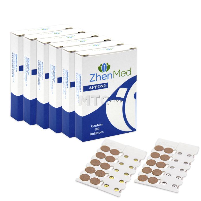 Os appongs ZhenMed, são delicadas estruturas de alumínio que foram desenvolvidas para trabalhar os pontos de acupuntura, o objetivo do appong é estimular continuamente os pontos de acupuntura e auriculoterapia. Para alguns tratamentos o uso do appong substitui totalmente o uso das agulhas. É um tratamento indolor, e as aplicações podem ser realizadas em pontos de acupuntura e auriculoterapia. Os appongs ZhenMed, estão dispostos em uma pequena caixa de papelão, contendo 100 unidades, são separados em cartelas adesivadas de 10 em 10 unidades. Características:
