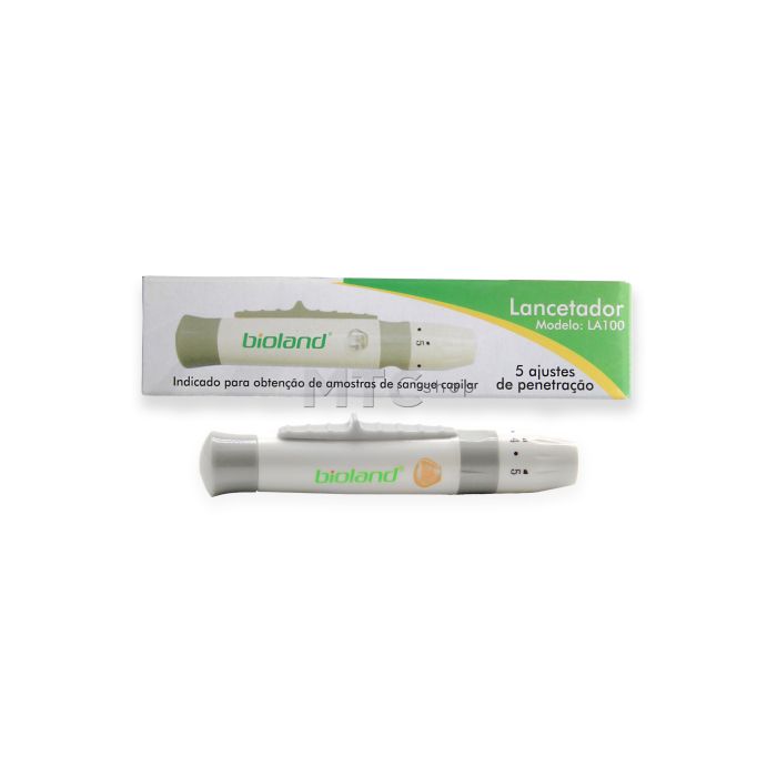 O lancetador LA100 é fabricado pela marca Bioland. É utilizado para obter amostras de sangue a fim de teste ou monitoramento de glicose no sangue. Ele é usado para acoplar as microlancetas e retirar a amostra necessária para a análise. Características: