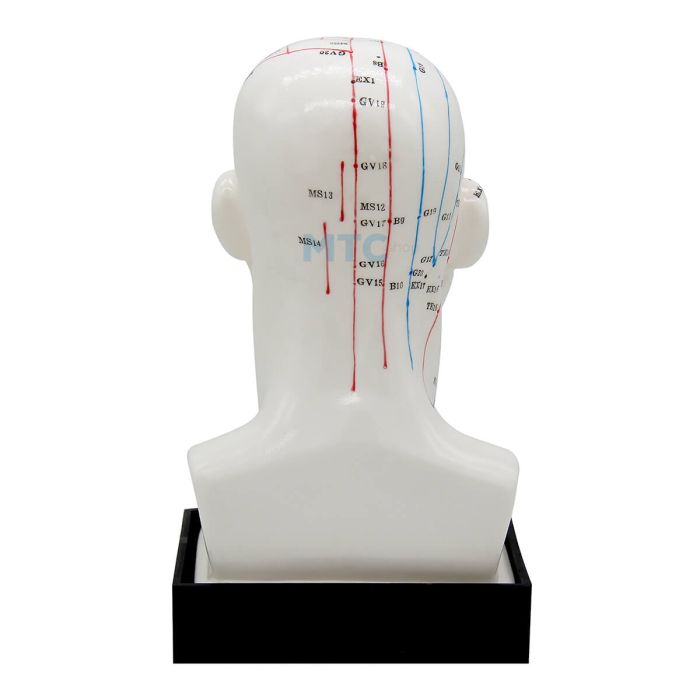 O modelo anatômico de cabeça para acupuntura, possui todos os importantes canais e pontos de acupuntura da cabeça e pescoço. O modelo de cabeça é reproduzido em detalhes coloridos que facilitam a forma de identificar os pontos e meridianos. Fabricado em material plástico, possui base plana para estudo. Características: