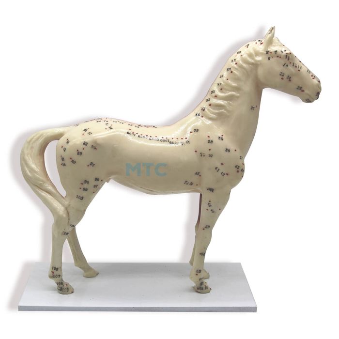 Modelo de cavalo com pontos para acupuntura é confeccionado em material plástico emborrachado, reproduz em detalhes minuciosos o tecido muscular. O modelo de cavalo expõe 100 pontos de acupuntura exposto no lado esquerdo do animal, os pontos estão demarcados por numerais. O modelo de cavalo para acupuntura, é composto por pontos de aplicação e é ideal para demonstrações didáticas e estudos práticos de acupuntura animal. Características: