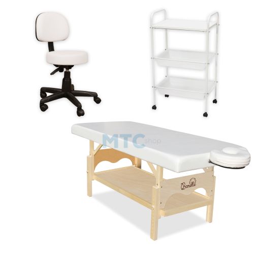 Esgotado - Maca Fixa Profissional + Escada de Madeira + Carrinho Auxiliar + Mocho Branca