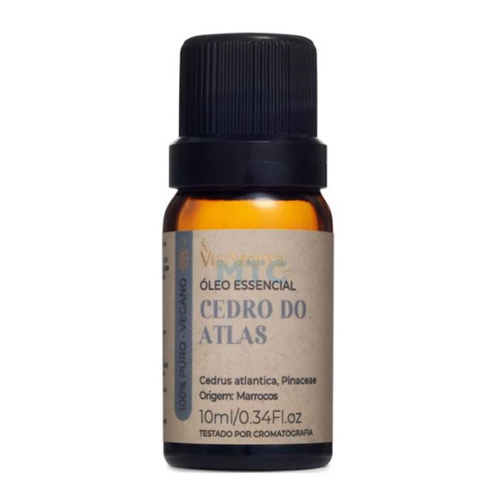 O óleo essencial Cedro do Atlas é produzido pela empresa Via Aroma e está disposto em um frasco de vidro contendo 10ml. O óleo essencial Cedro do Atlas, tem ação anti-inflamatória, antisséptica. Auxilia nos casos de bronquite, asma, rinite e sinusite. Características: