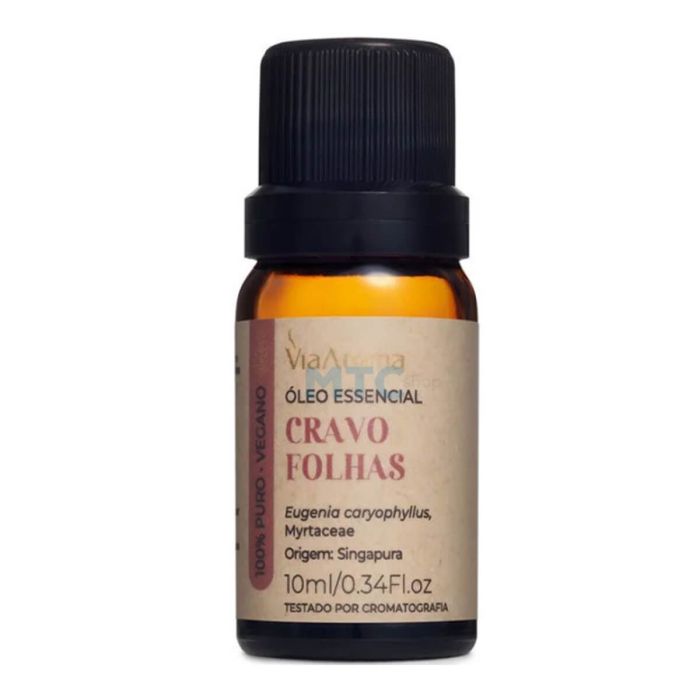 O óleo essencial Cravo Folhas é produzido pela empresa Via Aroma e está disposto em um frasco de vidro contendo 10ml. O óleo essencial Cravo Folhas, possui propriedades analgésicas, antissépticas, fungicidas, anti-inflamatórias e antivirais. É rico em eugenol, substância amplamente utilizada pela odontologia. Características: