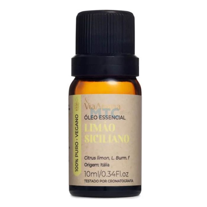 O óleo essencial de Limão Siciliano é produzido pela empresa Via Aroma e está disposto em um frasco de vidro contendo 10ml. O óleo essencial de Limão Siciliano, auxilia na desintoxicação, é rico em vitamina C e atua nos problemas digestivos. Características: