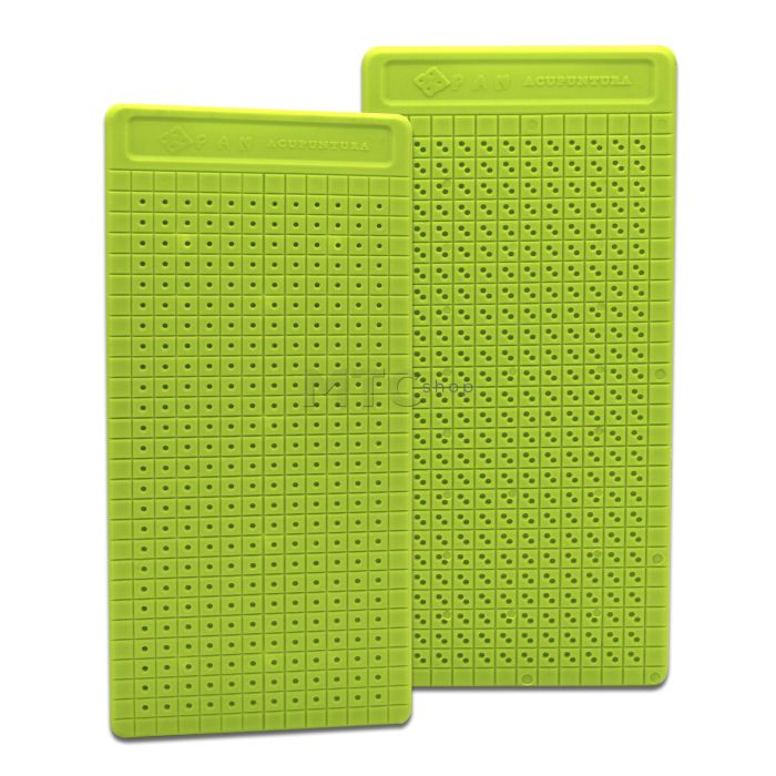 A placa para sementes de auriculoterapia Pan, foi desenvolvida para profissionais exigentes do ramo auricular. O objetivo da placa é facilitar a confecção de pontos auriculares e gerar comodidade para profissionais que preferem realizar a sua própria montagem. A placa para sementes de auriculoterapia possui duas faces, a primeira face contém um orifício e a segunda face contém dois orifícios. Em um lado o profissional consegue confeccionar pontos com uma semente/esfera e no outro lado tem a possibilidade de confeccionar pontos com duas sementes/esferas. A placa para semente possui uma superfície antiaderente e linhas guias para corte. Características: